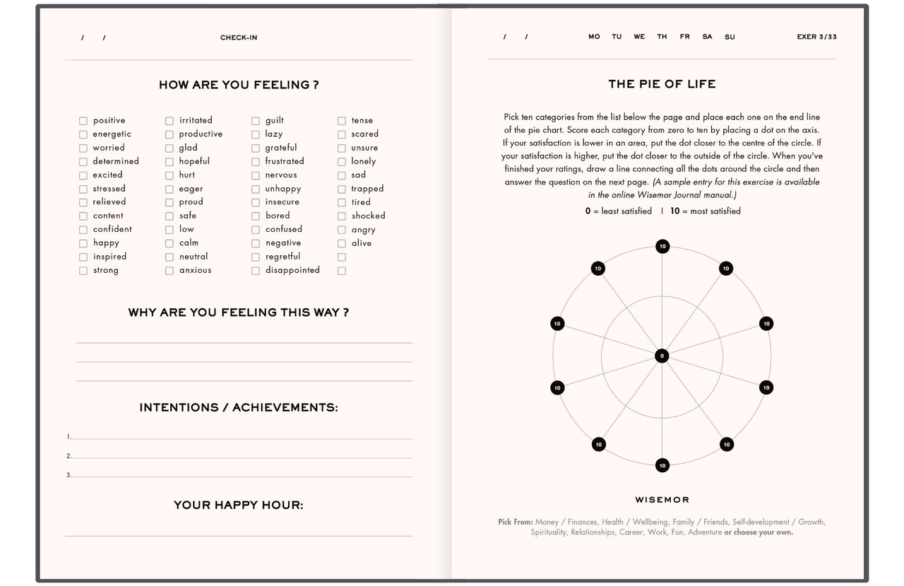 Wisemor Journal is designed for everyone—whether you're a beginner, intermediate, or a pro—and features our signature Check-in tool along with 33 life-changing exercises to help you begin your journaling journey. If you're new to journaling or haven't tried the Wisemor Journal yet, we recommend starting with Wisemor Journal.